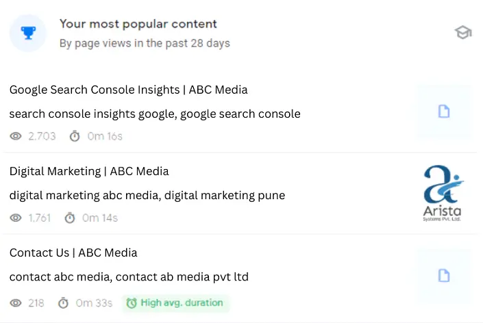 - Information on the most popular content on your site